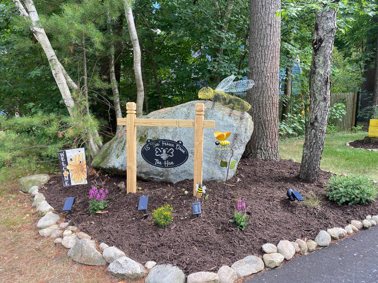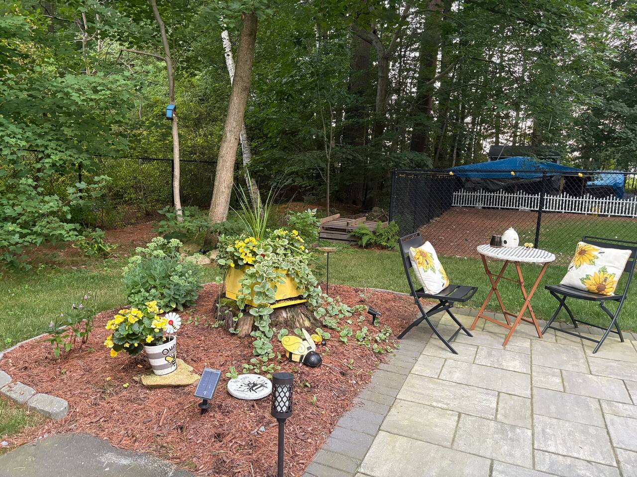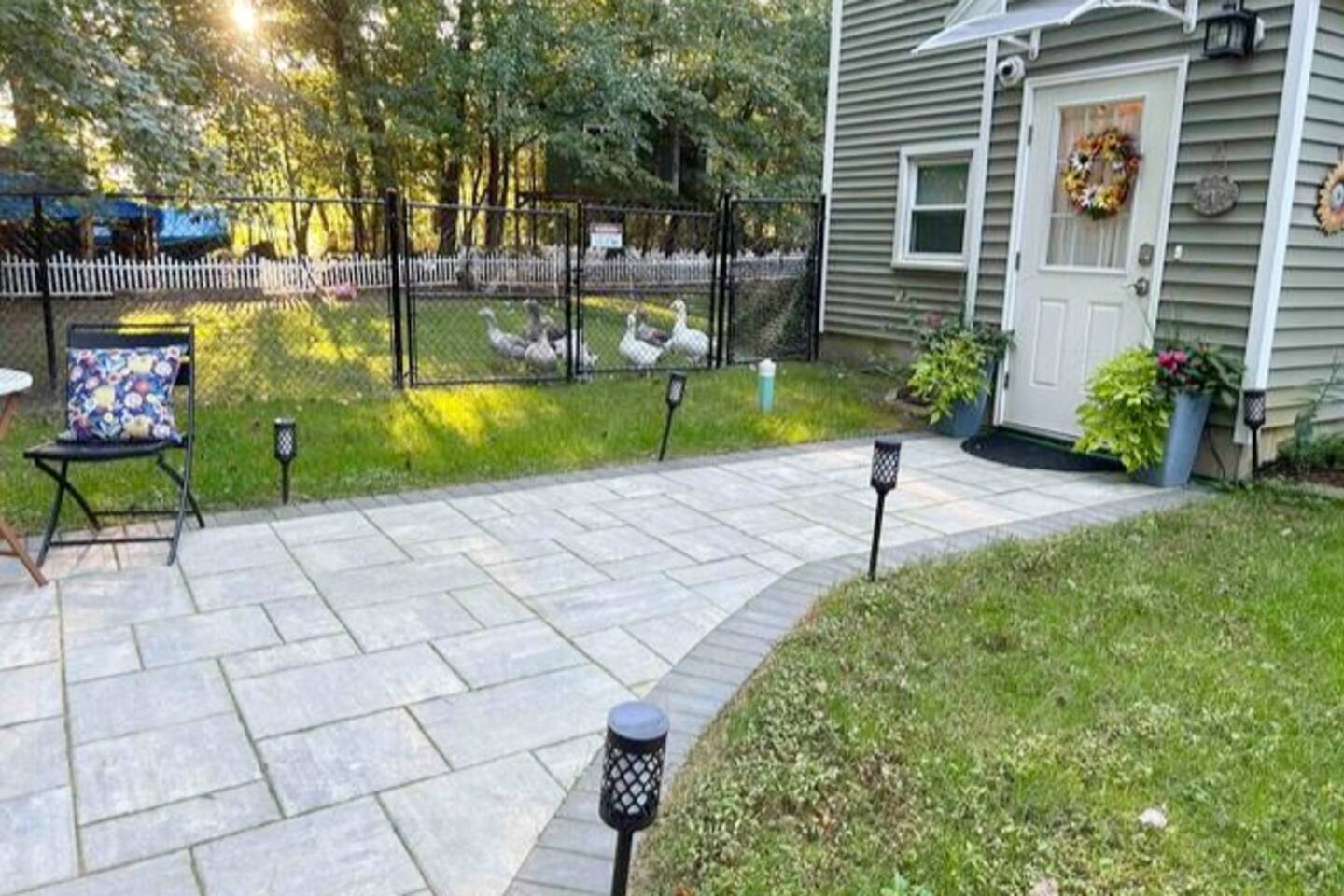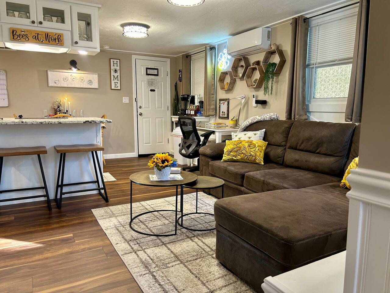 You’ll be all abuzz as you see the Hive’s honeybee theme emerge as you approach the apartment – with garden decked out with re-purposed beehive planters and bee garden decor. Step into the Hive’s foyer via convenient keyless entry and make your way to the open-concept living area, where you can relax on the comfy sectional sofa with chaise or play supplied board games. Enjoy the continuing bee theme as it unfolds throughout the space – from built-in hexagon furniture to bee decor, honey-colored accents, and adorable buzzing bees. Weary and hungry travelers not yet ready to make a meal can indulge in a snack from the kitchen table. Watch your favorite movies, shows, and sports on the 55" Samsung 4K TV via Apple TV with host-provided PLEX server (980+ movies on personal server) – plus cable channels. You can also access popular streaming services with your own log-ins. Content delivery is supported by super-fast Verizon Fios 1gbps (wireless speed in the Hive averages around 650 Mbps). Those with remote work needs will appreciate both the Wi-Fi and the provided workspace with a desk and executive office chair. Steps away, prep and cook your best culinary creations in the well-equipped kitchen featuring a refrigerator, 2-burner cooktop, microwave, toaster oven/air fryer, dishwasher, and a good selection of small appliances – waffle-maker, hand-mixer, blender, crock pot, rice cooker, and toaster. You’ll find plenty of counterspace – including the kitchen island – and all the cookware, bakeware, dishware, flatware, glassware, serving ware, and utensils you need to prepare and serve your favorite recipes. You can also count on fresh eggs from the Hive’s chickens! Dine at the kitchen table for 3 or at the kitchen peninsula with additional barstool seating for 2. Grab your morning hot beverage from the coffee bar with Keurig and electric kettle, along with coffee (ground and pods), tea, hot chocolate, honey, and other sweeteners, as well as flavored syrups. Sip your beverage on the patio in nice weather, enjoy the garden, and watch the antics of the nearby poultry. Plug into the provided EV charger as you head out for the day’s activities and after a full day of exploring all that the Boston metro area has to offer – or just hanging out enjoying the simple pleasures of the Hive, head for a restful night’s sleep in accommodations customized for the size of your group. For 1-2 guests, the bedroom offers a queen bed with sumptuous linens and flanked by sconce lights. Wind down to sleep watching the 42” Sony XBR2 1080P TV. Store your belongings in the dresser, closet, and the luggage rack in the closet. You’ll love the convenience of the well-lighted ensuite bathroom with shower stall and all bathroom essentials, including OPPEAL Delicen toiletries with Manuka honey and coconut oil. Parties of 4 guests will have use of the bedroom and sleeper sofa, which folds out into a full-size bed. Parties of 3 guests will have the bedroom and a twin rollaway bed so the sofa remains accessible for watching TV and relaxing. You’ll love the convenience of the washer and dryer. AMENITY HIGHLIGHTS: – Super-fast Verizon Fios 1gbps (wireless speed in the Hive averages around 650 Mbps) – EV charger – Built-in USB charging ports in the kitchen, bedroom, and living room – Views of geese and chickens from the fence or windows – Fresh chicken eggs in the fridge, snacks on the table – Coffee bar with coffee, tea, hot chocolate, flavored syrups, and more – Selection of small kitchen appliances – Host-provided PLEX server (980+ movies on our personal server) plus cable TV – Board games – Washer and dryer – Iron and ironing board – Extra pillows and blankets