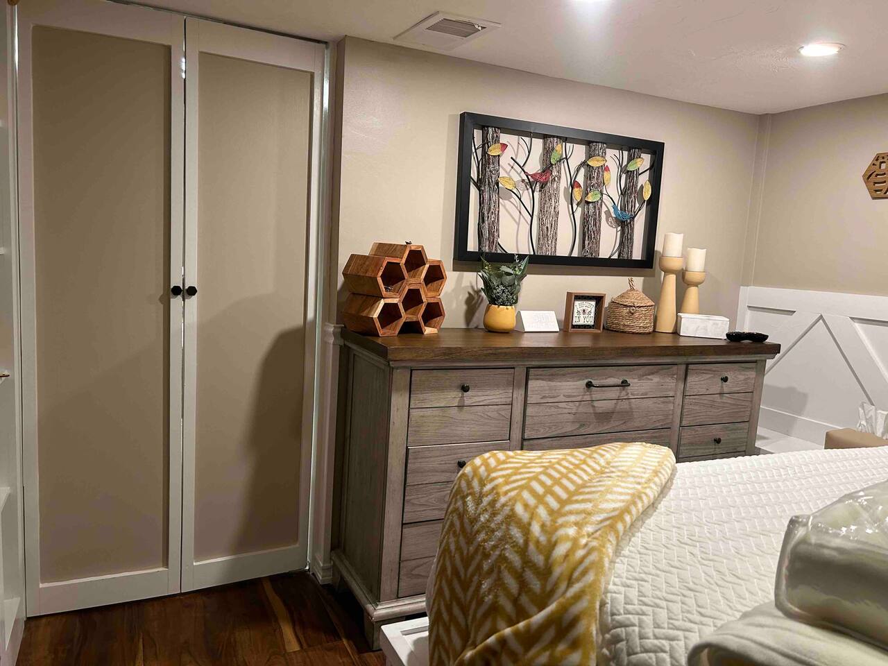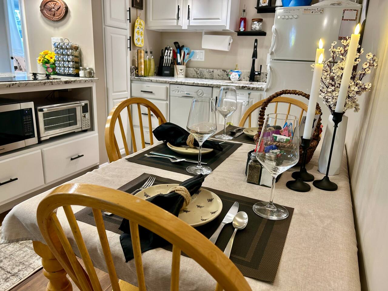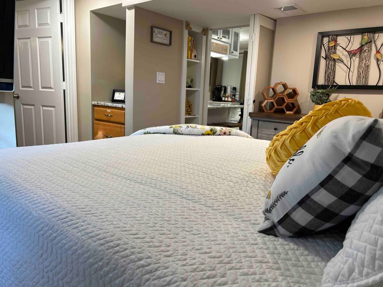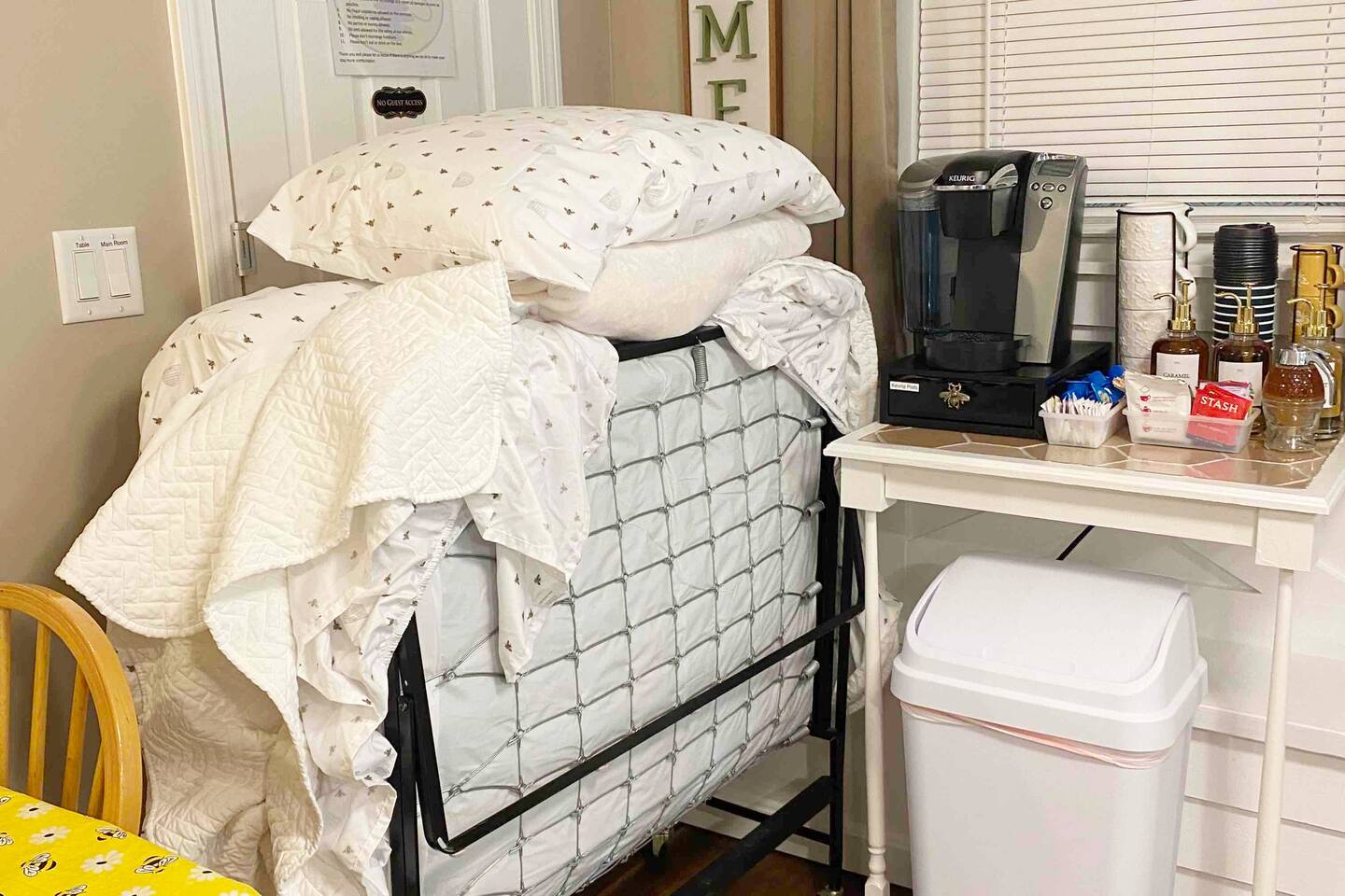 You’ll be all abuzz as you see the Hive’s honeybee theme emerge as you approach the apartment – with garden decked out with re-purposed beehive planters and bee garden decor. Step into the Hive’s foyer via convenient keyless entry and make your way to the open-concept living area, where you can relax on the comfy sectional sofa with chaise or play supplied board games. Enjoy the continuing bee theme as it unfolds throughout the space – from built-in hexagon furniture to bee decor, honey-colored accents, and adorable buzzing bees. Weary and hungry travelers not yet ready to make a meal can indulge in a snack from the kitchen table. Watch your favorite movies, shows, and sports on the 55" Samsung 4K TV via Apple TV with host-provided PLEX server (980+ movies on personal server) – plus cable channels. You can also access popular streaming services with your own log-ins. Content delivery is supported by super-fast Verizon Fios 1gbps (wireless speed in the Hive averages around 650 Mbps). Those with remote work needs will appreciate both the Wi-Fi and the provided workspace with a desk and executive office chair. Steps away, prep and cook your best culinary creations in the well-equipped kitchen featuring a refrigerator, 2-burner cooktop, microwave, toaster oven/air fryer, dishwasher, and a good selection of small appliances – waffle-maker, hand-mixer, blender, crock pot, rice cooker, and toaster. You’ll find plenty of counterspace – including the kitchen island – and all the cookware, bakeware, dishware, flatware, glassware, serving ware, and utensils you need to prepare and serve your favorite recipes. You can also count on fresh eggs from the Hive’s chickens! Dine at the kitchen table for 3 or at the kitchen peninsula with additional barstool seating for 2. Grab your morning hot beverage from the coffee bar with Keurig and electric kettle, along with coffee (ground and pods), tea, hot chocolate, honey, and other sweeteners, as well as flavored syrups. Sip your beverage on the patio in nice weather, enjoy the garden, and watch the antics of the nearby poultry. Plug into the provided EV charger as you head out for the day’s activities and after a full day of exploring all that the Boston metro area has to offer – or just hanging out enjoying the simple pleasures of the Hive, head for a restful night’s sleep in accommodations customized for the size of your group. For 1-2 guests, the bedroom offers a queen bed with sumptuous linens and flanked by sconce lights. Wind down to sleep watching the 42” Sony XBR2 1080P TV. Store your belongings in the dresser, closet, and the luggage rack in the closet. You’ll love the convenience of the well-lighted ensuite bathroom with shower stall and all bathroom essentials, including OPPEAL Delicen toiletries with Manuka honey and coconut oil. Parties of 4 guests will have use of the bedroom and sleeper sofa, which folds out into a full-size bed. Parties of 3 guests will have the bedroom and a twin rollaway bed so the sofa remains accessible for watching TV and relaxing. You’ll love the convenience of the washer and dryer. AMENITY HIGHLIGHTS: – Super-fast Verizon Fios 1gbps (wireless speed in the Hive averages around 650 Mbps) – EV charger – Built-in USB charging ports in the kitchen, bedroom, and living room – Views of geese and chickens from the fence or windows – Fresh chicken eggs in the fridge, snacks on the table – Coffee bar with coffee, tea, hot chocolate, flavored syrups, and more – Selection of small kitchen appliances – Host-provided PLEX server (980+ movies on our personal server) plus cable TV – Board games – Washer and dryer – Iron and ironing board – Extra pillows and blankets