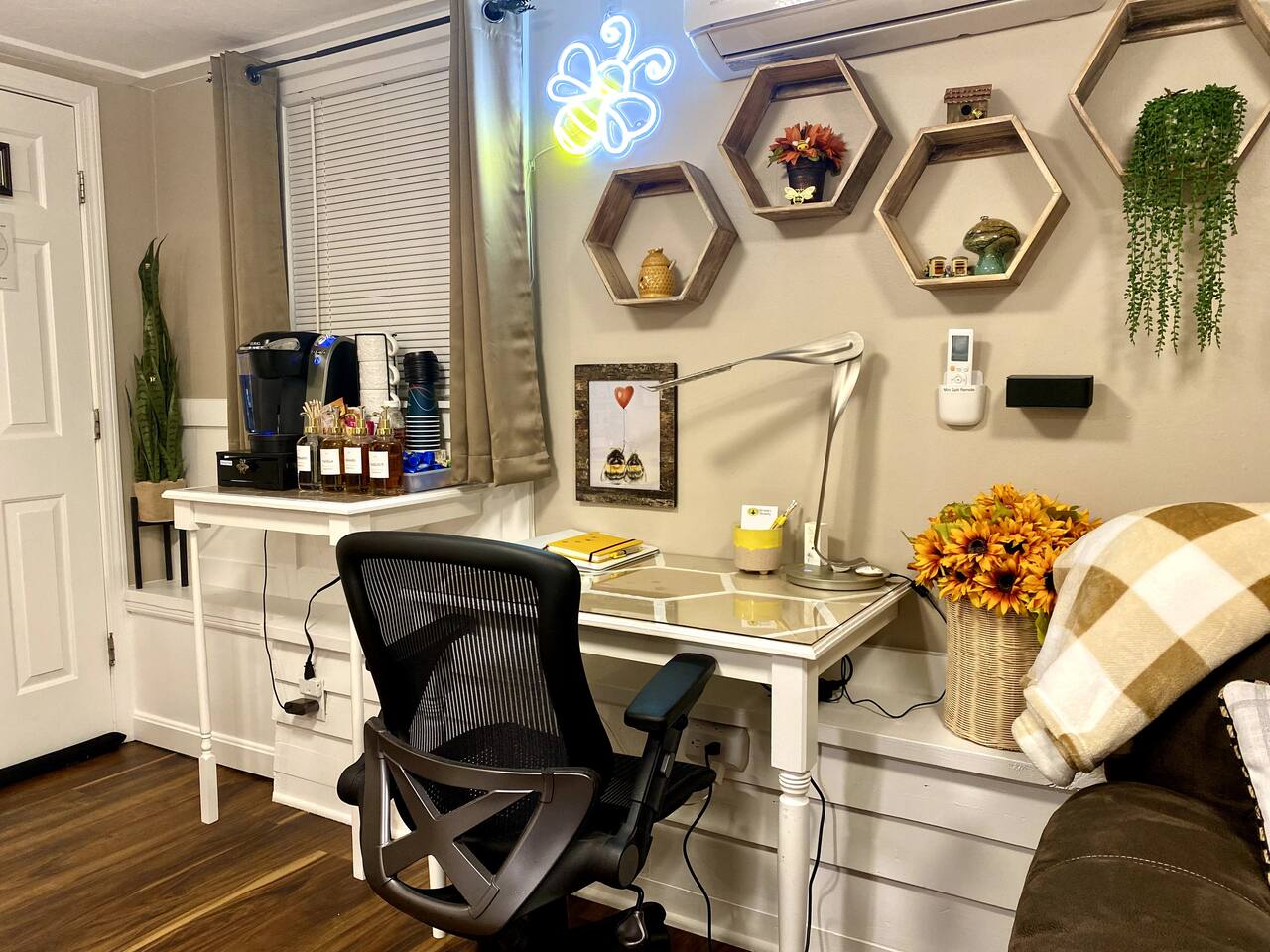 Plan a unique and memorable stay at the Hive, a bee-themed apartment in a Boston suburb 21.1 miles from the city. Delight in the charming honeybee-inspired décor. Relax on the patio and enjoy the nearby chickens and geese – and especially their fresh eggs. You’ll love the entertainment options – 100s of free movies plus cable TV and access to streaming channels. Everything you need is here, from a full kitchen with a coffee bar to EV charger. Got work? A workspace and super-fast Wi-Fi await you.